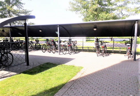 På bookingdagen skal du parkere din cykel i det aflåste skur ved Rådhuspassagen 2 (se billede).