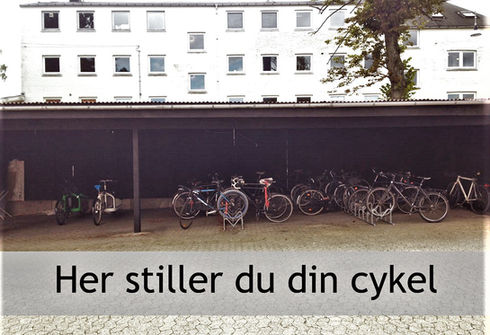 På bookingdagen skal du parkere din cykel til venstre i den overdækkede cykelparkeringen foran indgangen
